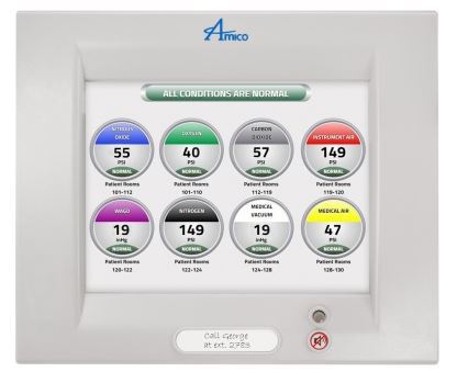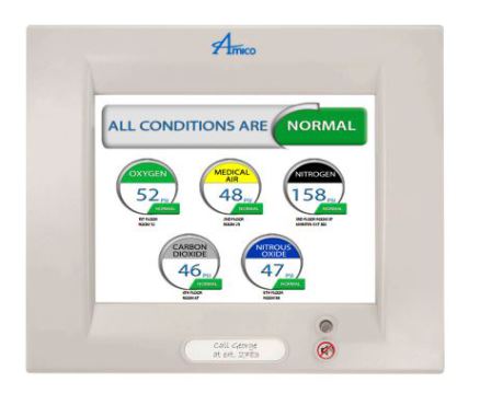 Amico’s Alert-3 LCD Area Alarm actively displays your Medical Gas information on a highly visible 10" (25.4 cm) TFT LCD screen. Capable of handling up to 8 gases, one alarm fits all areas of the hospital, regardless of gas requirements. Facilities can also upgrade existing alarms via our simple “Retro-fit,” with no need to break walls or cut pipes. Bring your facility into the 21st century with state of the art LCD technology. Its quality and design will bring you years of accuracy and reliability.