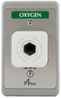 The Amico outlet continues to provide worry free and dependable service. Aesthetically pleasing in any patient room, this Puritan Bennett connection Amico gas outlet provides a full color fascia for easy gas identification during those “critical” moments. Amico’s outlets exceed flow rate requirements set by NFPA/CSA. All outlets are 100% cleaned and tested in order to ensure quality and are backed by our industry leading 5 year Warranty. We also have other configurations available to match your requirements