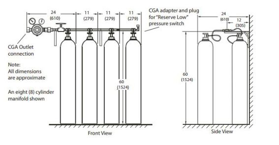 The Manifold is semi-automatic and shall switch from “In Use” bank to “Reserve” bank once the “In Use” bank depletes. Manual operation shall be required at the time